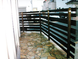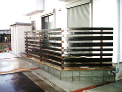 | ⑤別の角度から撮影しました。 | ⑥目隠しとして幅9㎝と14㎝の木材を使って、ウッドフェンスを作り完成です。 |
