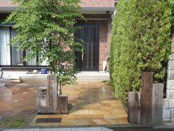 HPの更新をやっていただいてる(株)パソルームさんのスタッフのお宅をやらせていただきました。 花壇はサワンの黒ピンコロを使用して通路にわインド砂岩をストレッチャー敷きにしてセンサーライトを埋め込みました。