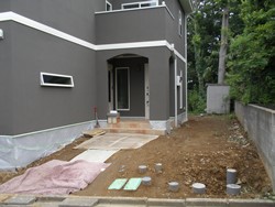 アプローチ部分に乱形石を張り駐車場を3台分コンクリートで仕上げました。
