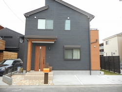 玄関のアプローチ部分には乱形石を張り詰めて、駐車場のひび割れ防止に白玉砂利を使用しました。