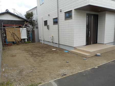 庭部分には、天然石でテラスを造り立水洗を設けました。