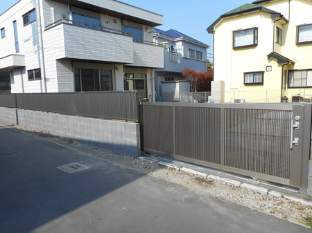 駐車場の入り口には、エススライドを使い、引き戸の門扉を設置しました。