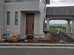 外構工事の依頼を頂きました。 門柱はジョリパットで仕上げシンボルツリーにシマトネリコとニューサイランを植えました。 アプローチには乱形石を張り駐車スペースにカーポート1台分を設置しました。