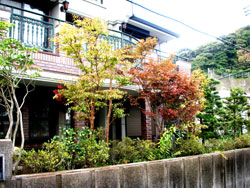 | ⑤別の角度から撮影しました。 | ⑥建物側から撮影したものです。 移植した木の周りが淋しかったので、 カンツバキを植えてみました。 |