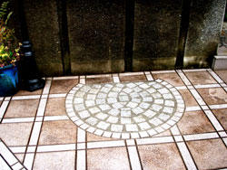 ⑧移植した後の穴を埋める為、御影の ピンコロを張りました。 |