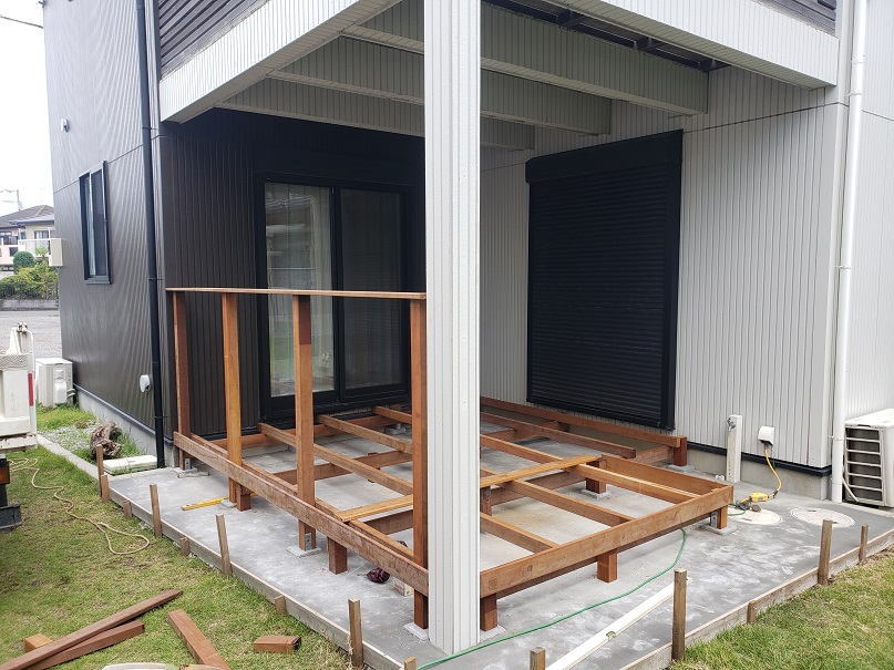 耐久性の高いウリン材で作り草が生えないように下にコンクリートを打設しました。